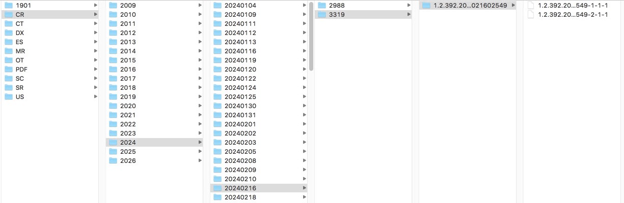 とりあえずその場でなんとかしなければならなかった折、Mac同士で自動的にDICOM画像をやり取りする機能(JUZZと呼んでいます)は使えたため、片っ端からDICOM画像を全自動同期にしています。この半年はこの手で逃げてきました。つまり、検査を個々に選択するわけではなく、親機から定期的に全画像データをダウンロードするプログラムを提供し、クエリリトリーブ機能を使うことなく、全部の画像を用意してしまうと言う対策でした。数年前のデータを手に入れたいときどうするか?この時は親機から送信機能を使ってもらってました。